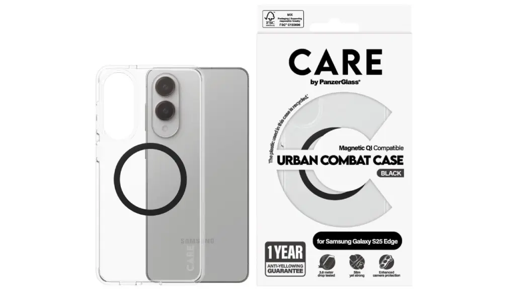CARE by PanzerGlass Flagship Urban Combat Black QI este proiectată special pentru cei care nu acceptă compromisuri - nici în protecție, nici în estetică.