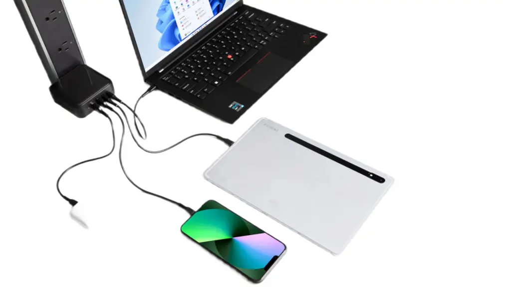 Cu această putere la dispoziție, puteți încărca simultan computerul de serviciu (cum ar fi un MacBook Pro sau Chromebook), laptopul personal, telefonul și tableta (cum ar fi un iPad Pro sau Kindle).