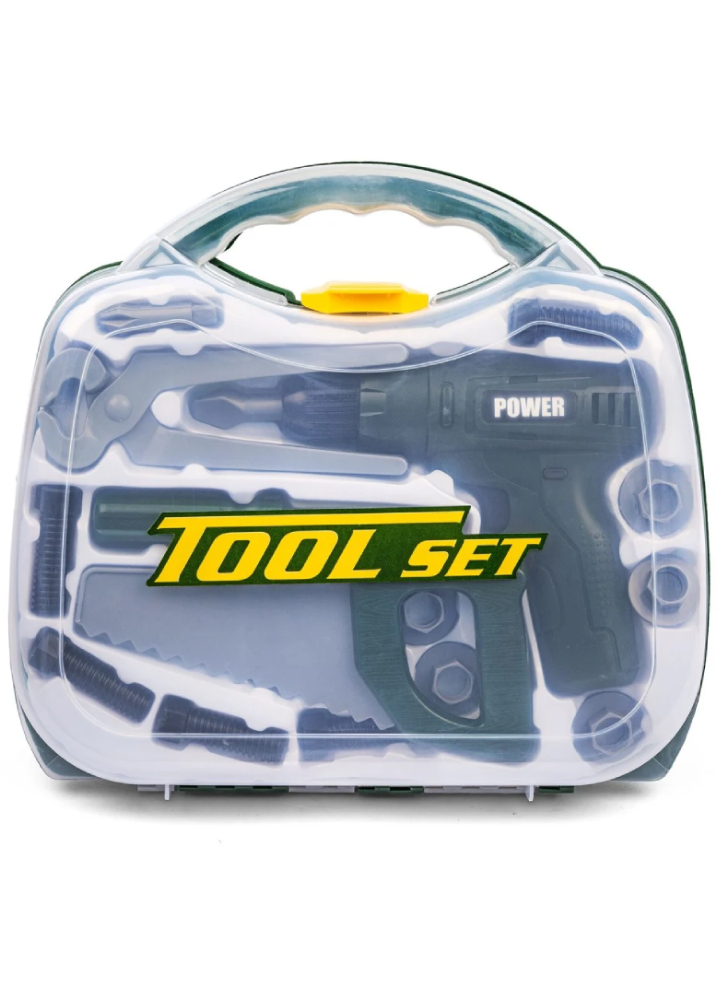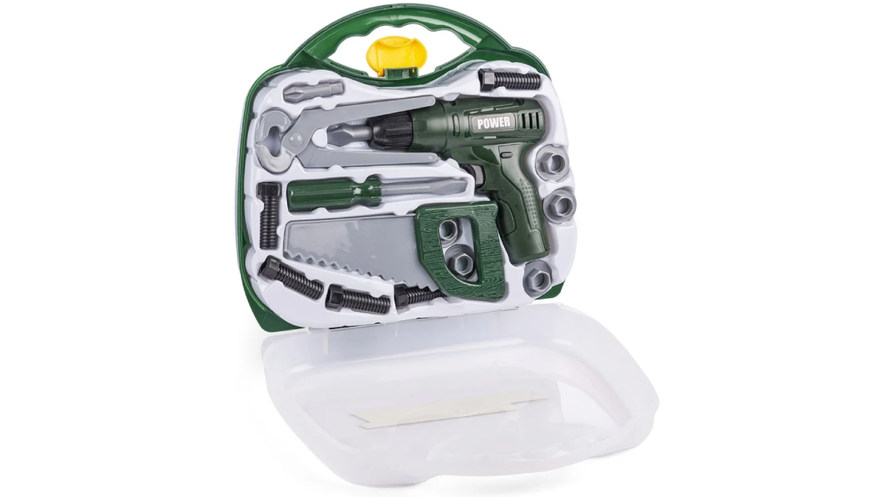Valiză cu bormașină și accesorii. Cu bormașină cu baterii și o mulțime de unelte de joacă.