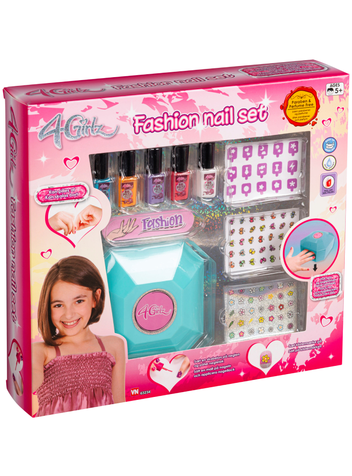 Setul 4-Girlz Nail Art este un set cuprinzător de design de unghii adaptat pentru tinerele entuziaste cu vârsta de 5 ani și peste.