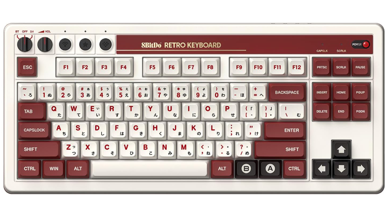 Creată de 8BitDo, o companie cunoscută pentru perifericele de jocuri în stil retro, această tastatură este o colaborare cu popularul Famicom.