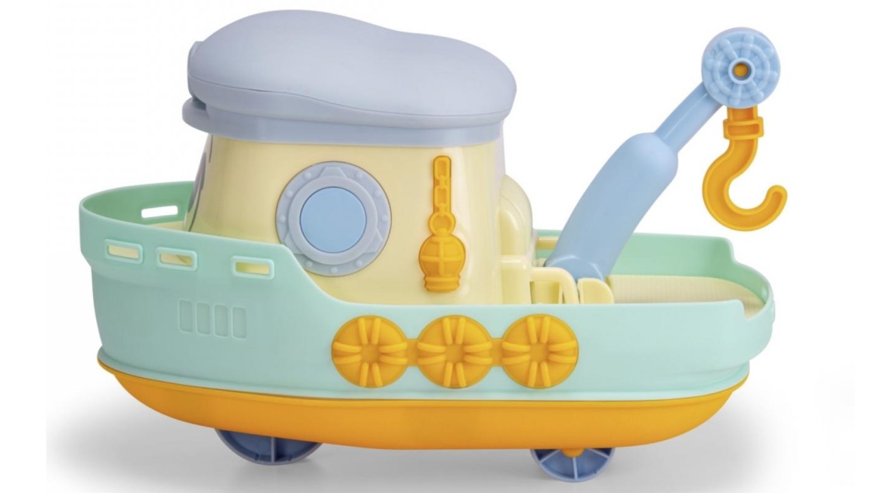 Această barcă drăguță este ușor de prins de un copil mic și are, de asemenea, părți mobile care fac jocul un pic mai interesant.