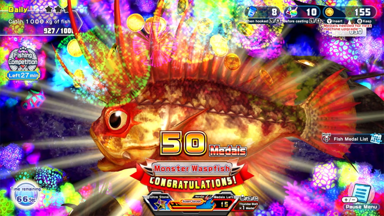 - Using the medals earned by playing the various attractions, you can spin the Fish Gacha Machine to purchase new fish for your aquarium. Aim to complete the world's largest aquarium, filled with creatures of all kinds!