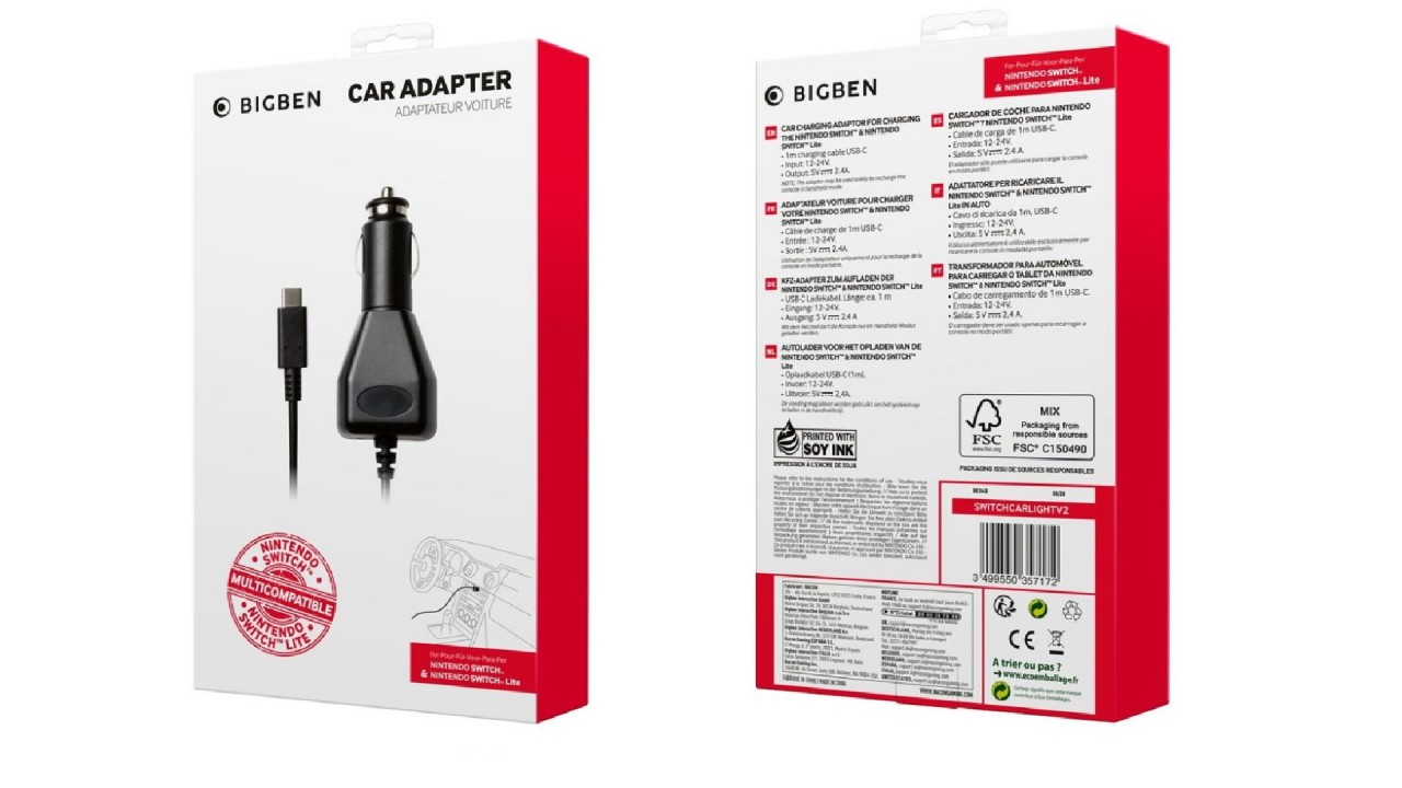 Incarcator Auto BigBen pentru Nintendo Switch.