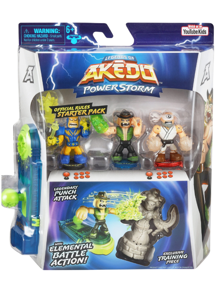 Pachetul Starter Pack cu reguli oficiale include 3 Războinici Akedo: dintre care unul este un Războinic legendar cu o acțiune realistă de lovire cu piciorul sau cu pumnul, care poate da o Lovitură Despicată cu lovitura lor puternică.