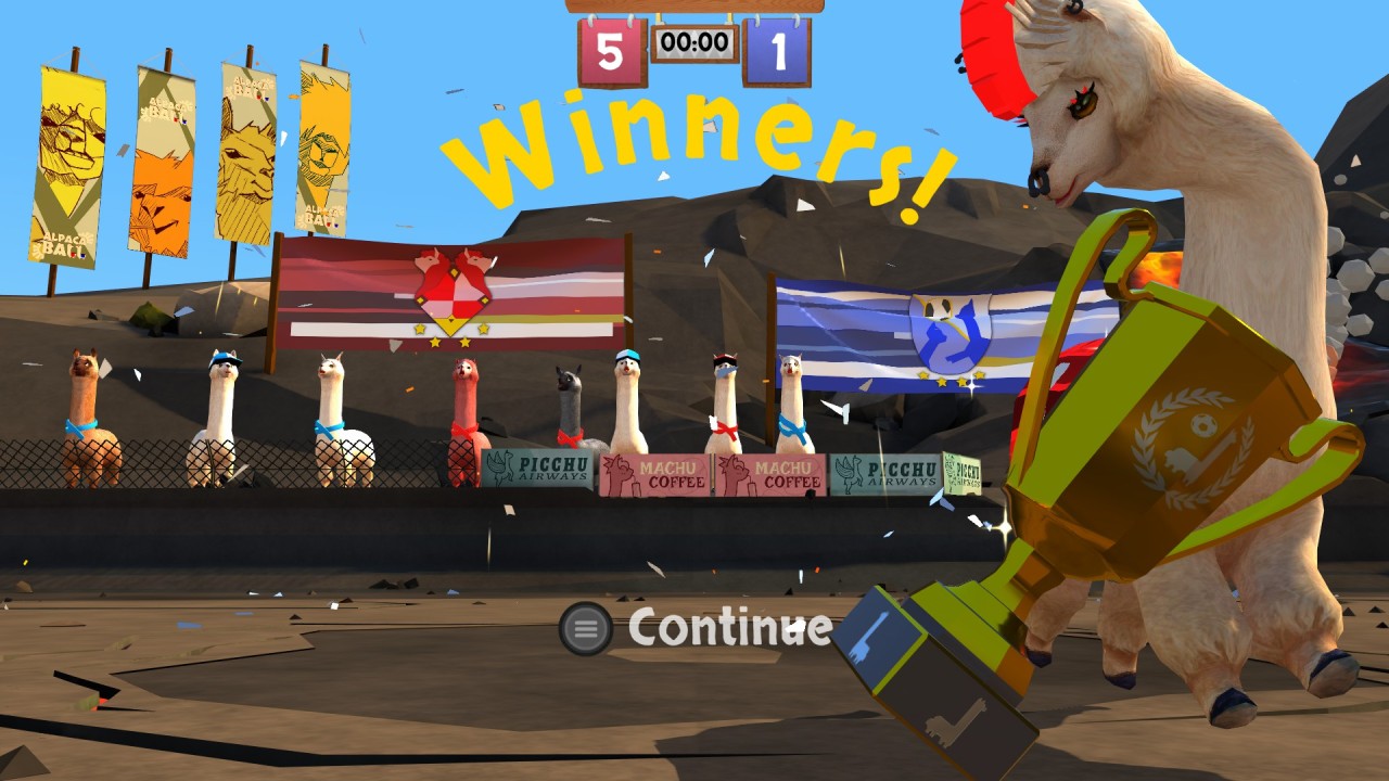Alege-ți alpaca, personalizează-i aspectul și pregătește-te să găsești obiectivul rival folosind puterea și elasticitatea gâtului lor. Aruncă-ți adversarii și exploatează fizica mingii pentru a dezlănțui șuturi spectaculoase, sărind mingea de pe zidurile terenului.