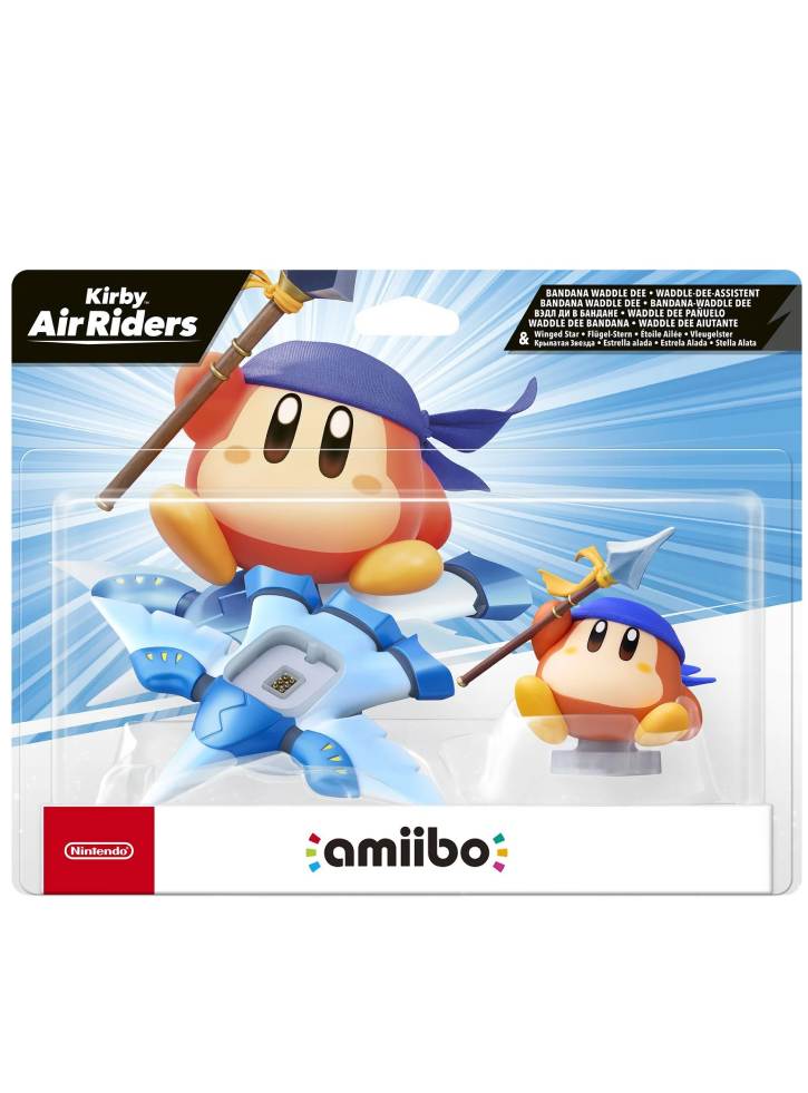 In the Kirby Air Riders game, place this Amiibo Bandana Waddle Dee on Amiibo Winged Star to create a Rider & Air Ride Machine combination.