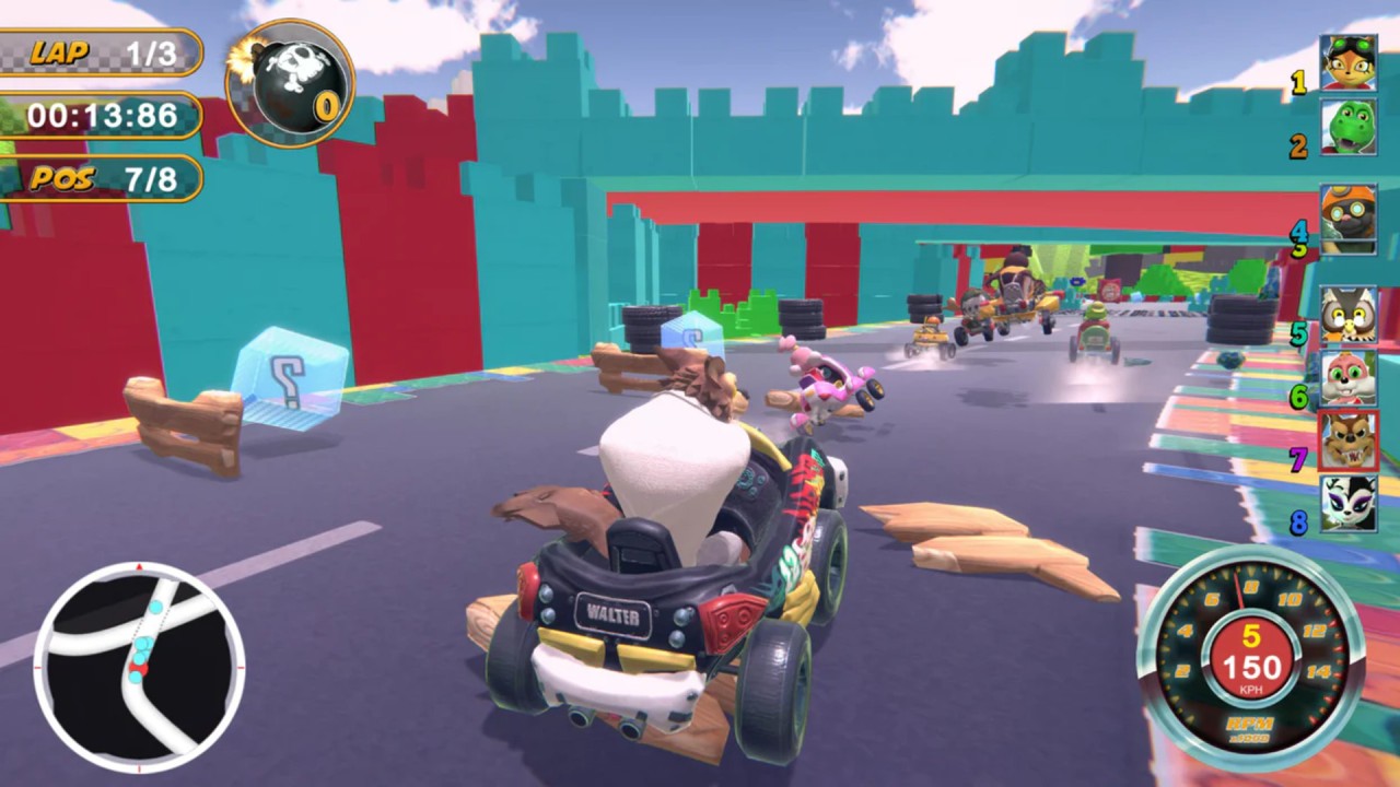-Volan Curse distractive și rapide pentru până la 4 jucători. Folosește power-up-uri și fii primul care trece linia de sosire înAnimal Kart Racer.