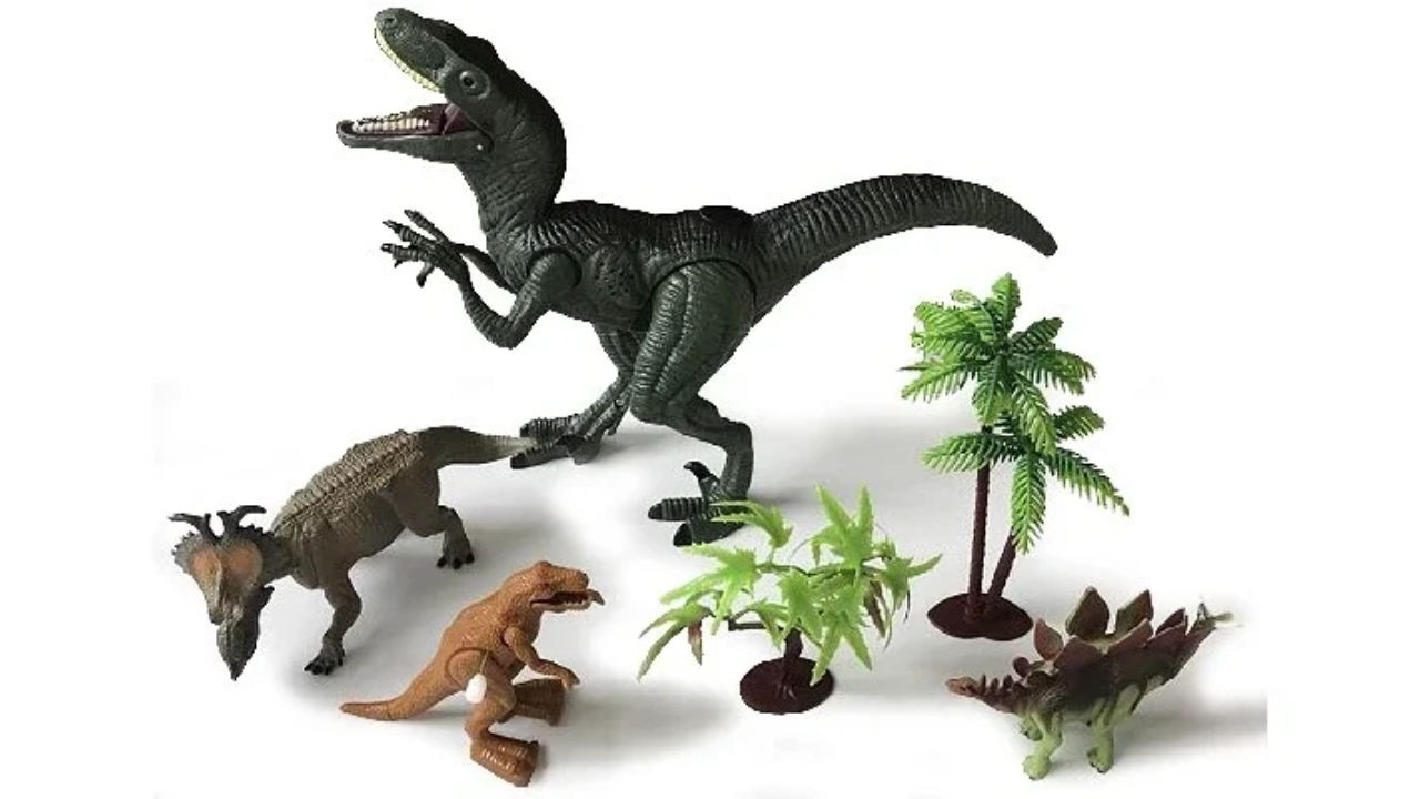 Brațele și capul pot fi înclinate în sus și în jos. Unul dintre dinozaurii mai mici vine cu o tragere, astfel încât poate merge singur atunci când îl trageți în sus.