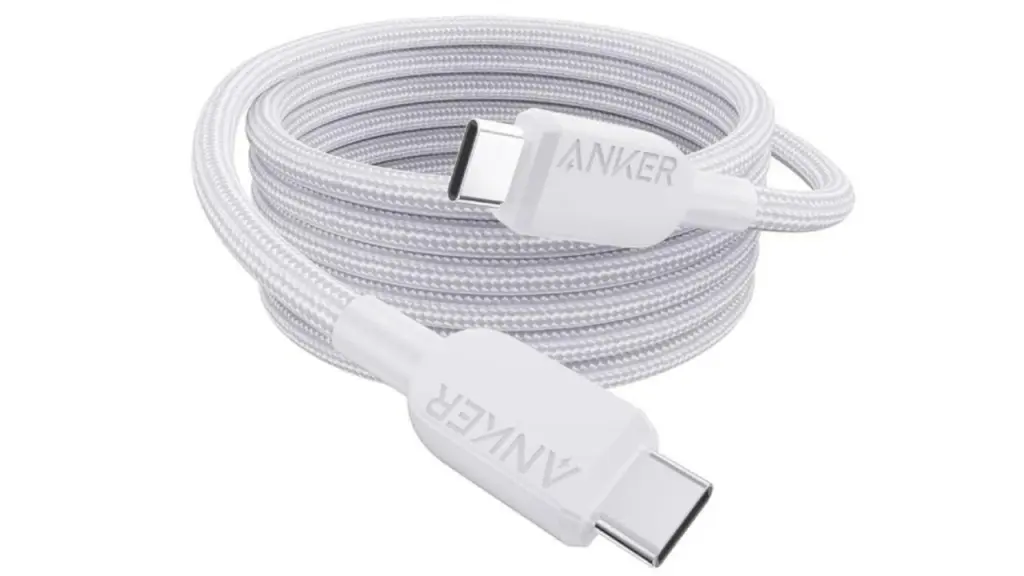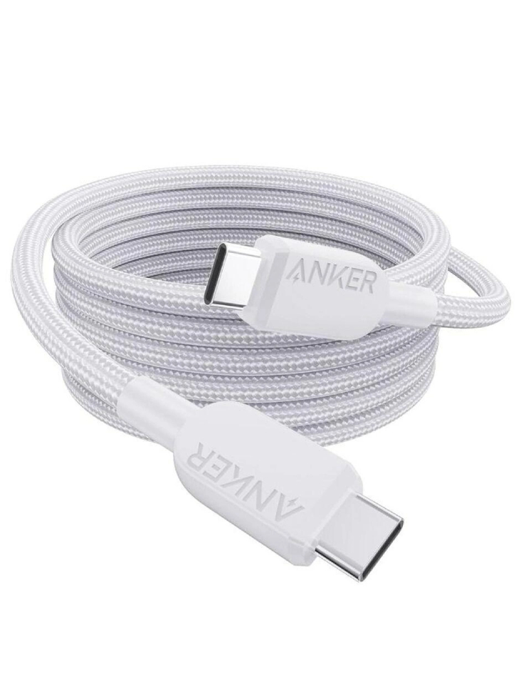 Cablul Anker USB-C la USB-C (1,8 m, 240 W, împletit) de culoare albă combină performanța premium și durabilitatea pentru a oferi capacități de încărcare și transfer de date de top.