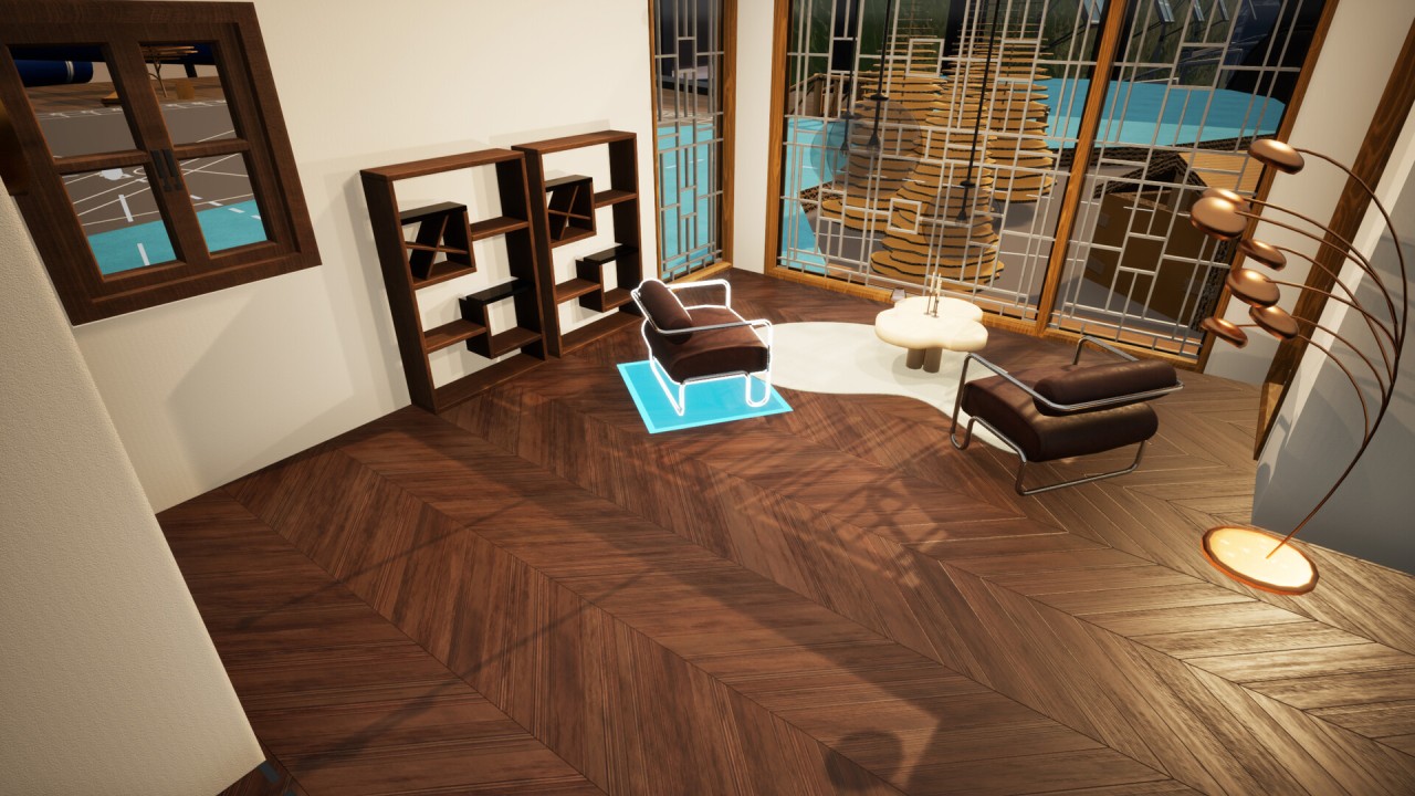 - Treceți la modul prima persoană pentru a vă vizita casele odată construite. Schimbați poziția soarelui pentru a testa performanța camerelor în diferite lumini și relaxați-vă în timp ce vă admirați creațiile în cadrul biomului lor