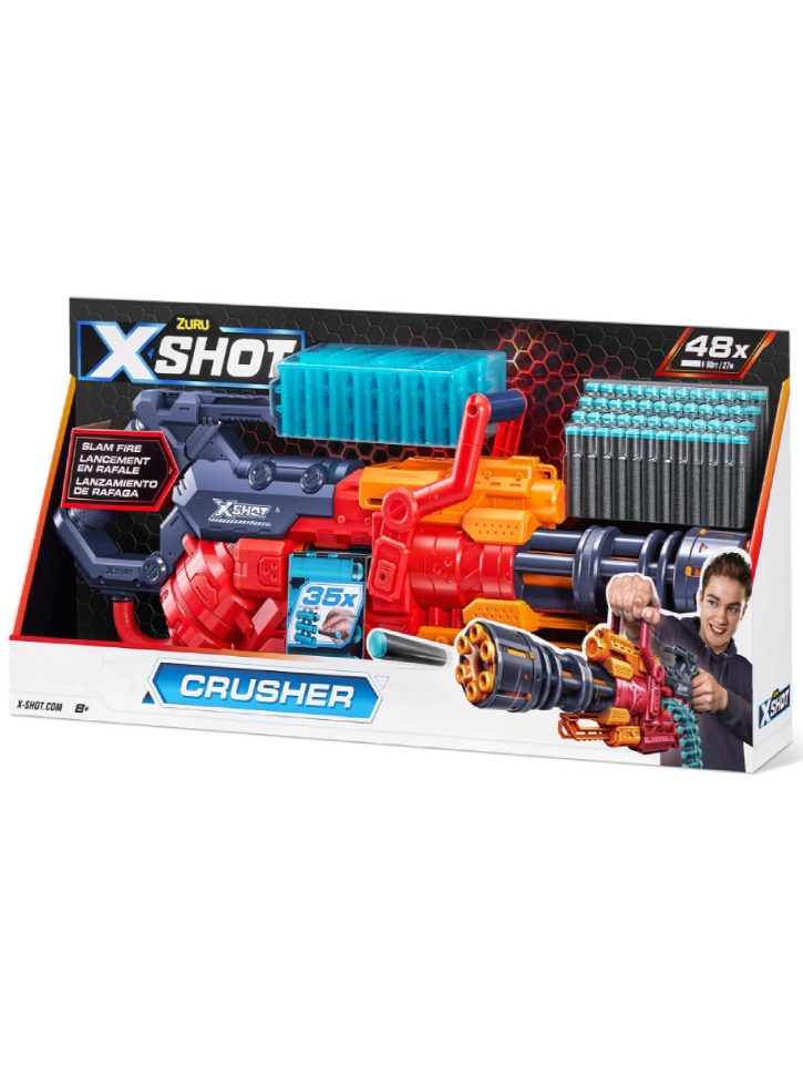X-Shot Crusher este blasterul suprem pe care îl așteptați. Vă puteți anihila adversarii cu funcția de o singură lovitură de la o distanță de până la 90 de picioare/27 m.