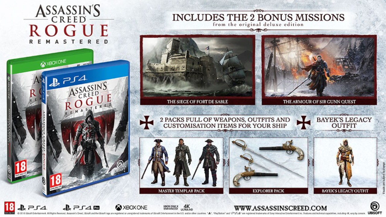 Assassins Creed Rogue Remastered include:
