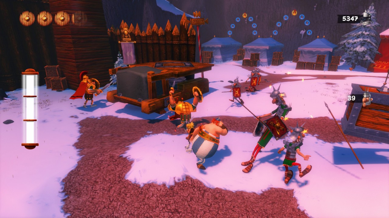 Comutați între Asterix & Obelix et călătoriți prin diferite regiuni ale lumii, cum ar fi Grecia sau Egipt, pentru a-i elibera pe Impedimenta, Panacea, Getafix și pe ceilalți săteni.