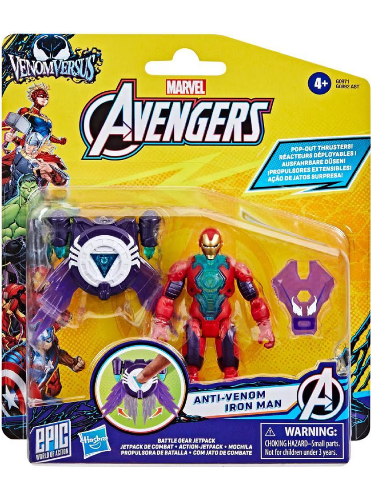 Această figurină de acțiune Anti-Venom Iron Man Marvel face parte din seria exclusivă Epic World of Action de la Hasbro și are design inspirat de Venom, precum și membre pozabile.