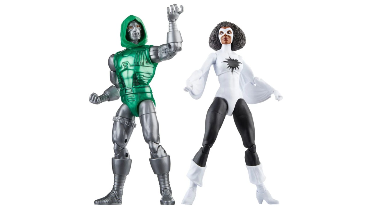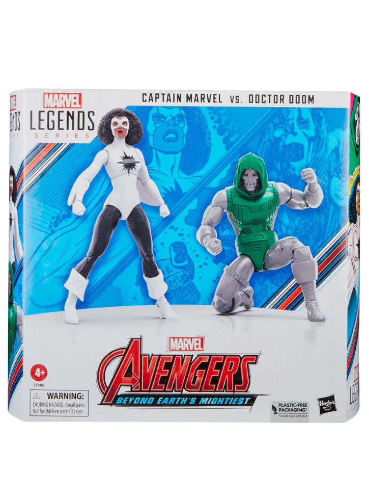 Acest set de figurine de colecție Marvel Legends Avengers 60th Anniversary este detaliat pentru a semăna cu personajele Captain Marvel și Doctor Doom din benzile desenate Marvel Super Heroes Secret Wars.