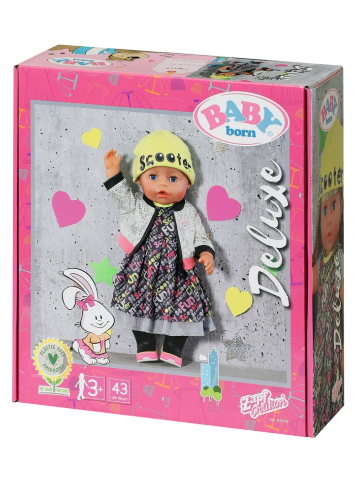 Hainele BABY born de înaltă calitate, care sunt ușor de pus și de dat jos - permit o joacă și mai variată și de lungă durată, distractivă.
