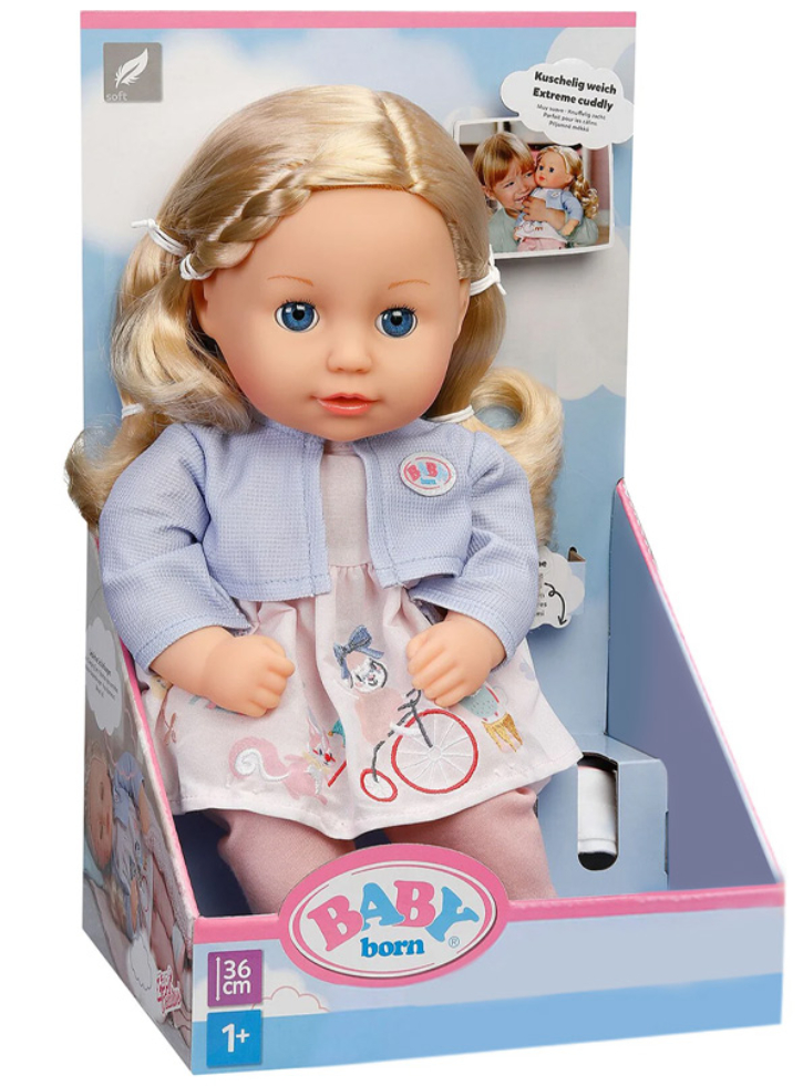 BABY born Sophia Rose de la ZAPF Creation este o păpușă moale cu păr blond de înaltă calitate, care poate fi coafată și modelată după dorință.
