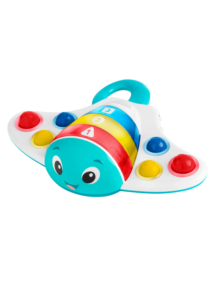 Jucăria Baby Einstein Ocean Explorers Pop & Explore Stingray Popper ajută bebelușul să exploreze muzica, formele, numerele și culorile prin intermediul jocului multisenzorial.