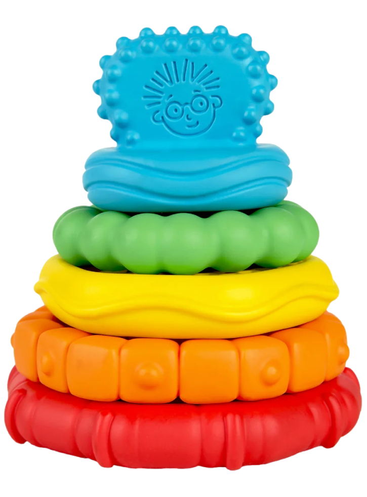 Explorați noi texturi, calmați gingiile dureroase și încordați mușchii abilităților motorii cu jucăria de dentiție multi-texturată stack & teethe de la Baby Einstein.
