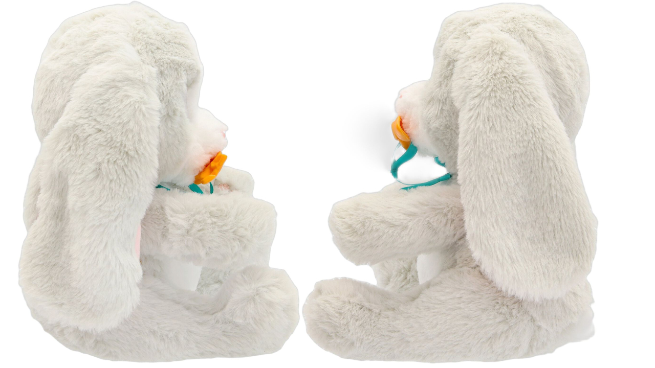 It comes with its own personalized accessories: a changing pad and a pacifier. Give him the pacifier to watch him close his eyes and make sweet sounds.