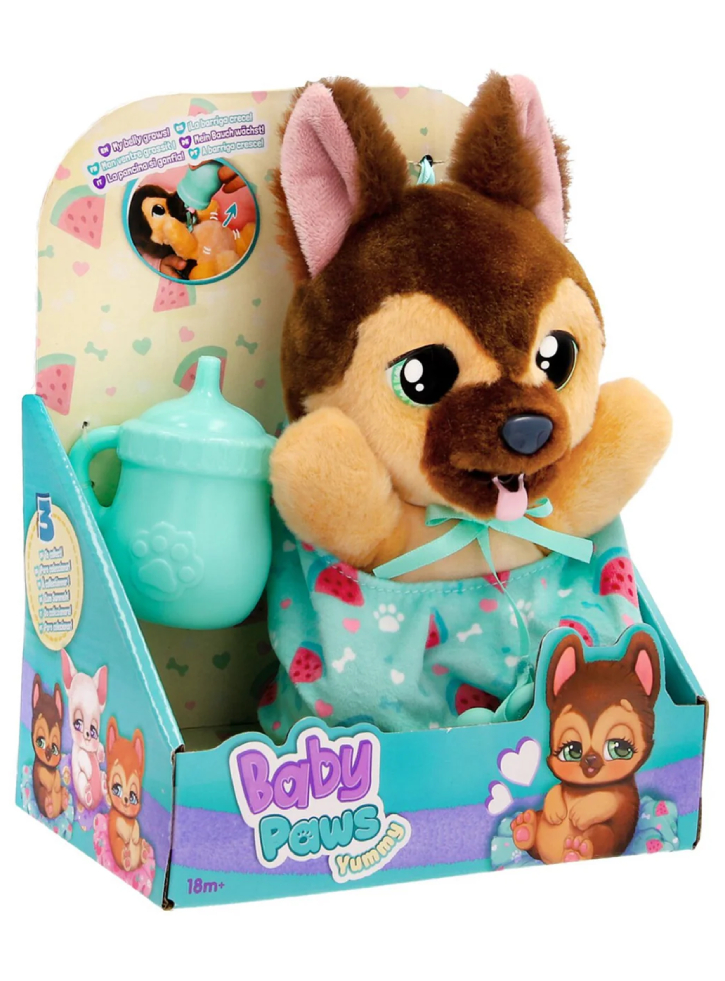 Baby Paws Yummy German Shepherd este o jucărie de pluș fermecătoare, inspirată de una dintre cele mai iubite și respectate rase de câini din lume Ciobănescul German.