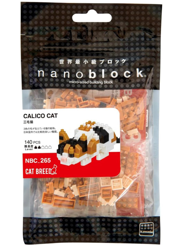 O colecție oficială de animale nanoblock, reprezentând o pisică calico, cu o blană tricoloră.