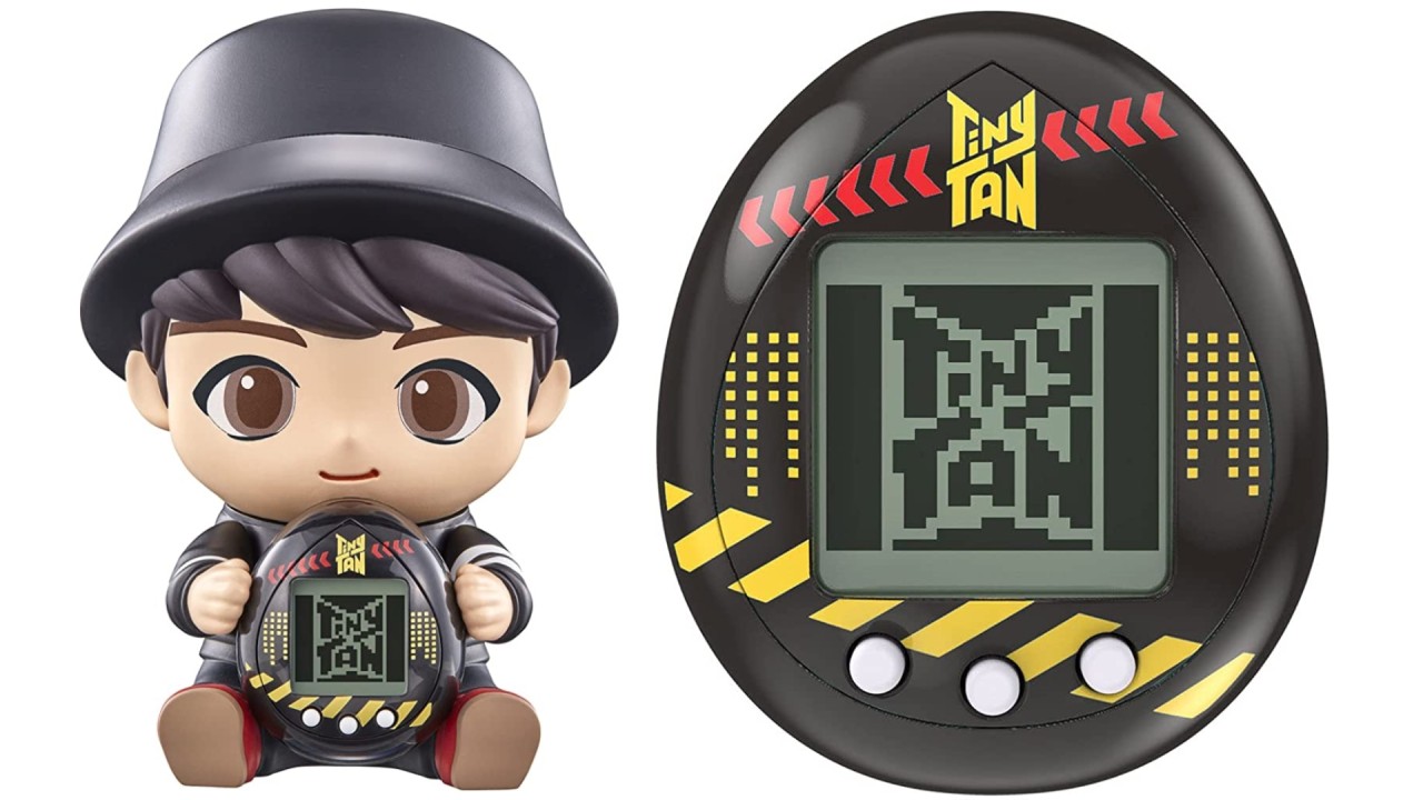 Acesta este un dispozitiv exclusiv BTS TinyTAN Tamagotchi în versiunea neagră care include o figură de vinil moale TinyTAN care îmbrățișează Tamagotchi.