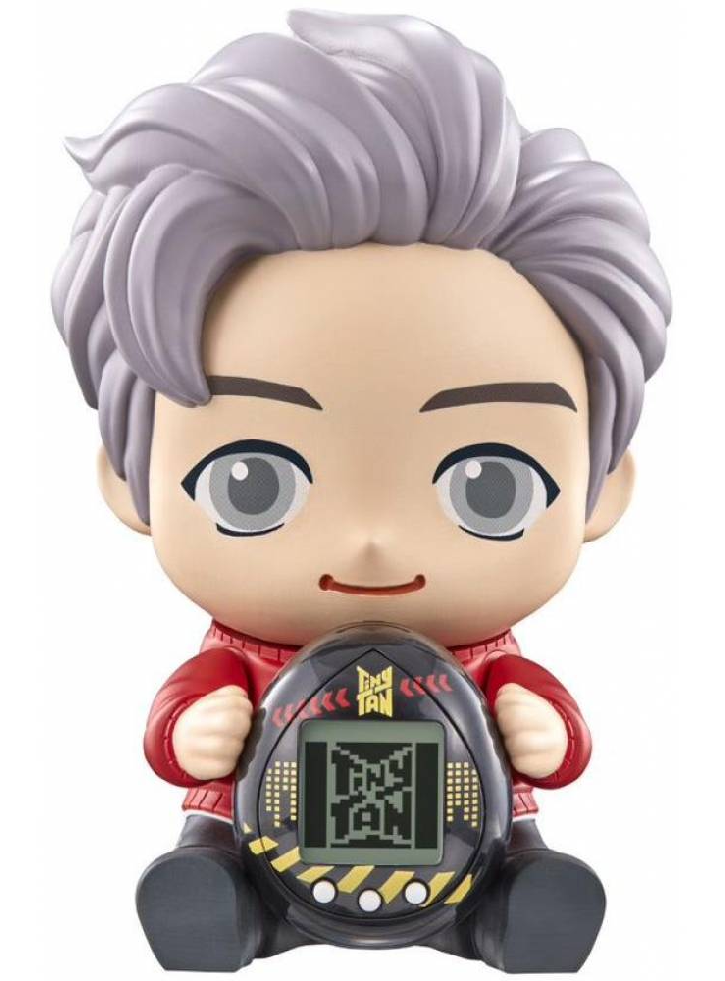 Un dispozitiv Tamagotchi BTS TinyTAN Tamagotchi exclusiv în versiunea neagră, care include o figurină de vinil moale cu personajul TinyTAN care îmbrățișează Tamagotchi.