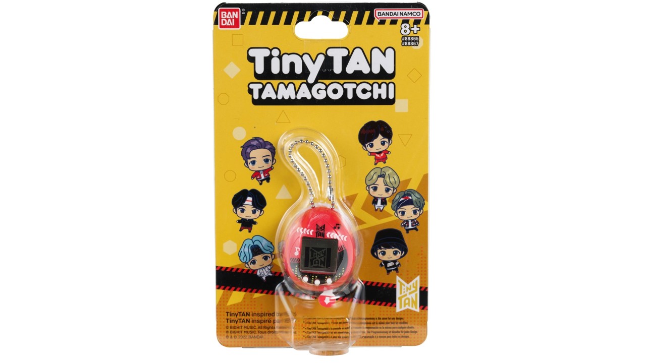 TinyTAN Tamagotchi Red has a red and black motif inspired by the "MIC Drop".
