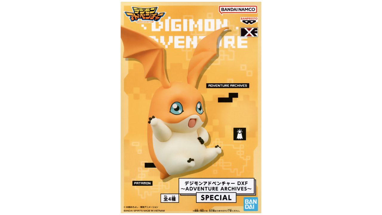 Explorați lumea digitală cu figurina DXF-Adventures Archives a lui Patamon, din "Digimon Adventures". Această figurină unică surprinde esența partenerului iubit Digimon, pregătit să trăiască noi aventuri alături de DigiDestinatul său.