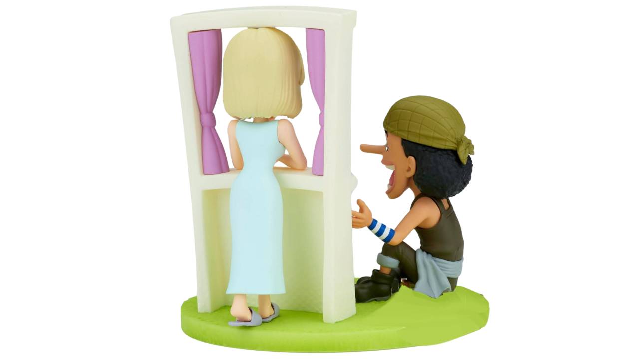 The figurine represents Usopp, the sniper in Luffy's crew, telling a story to Kaya, Usopp's friend who likes to tell him stories because she is sick and can't leave the house.