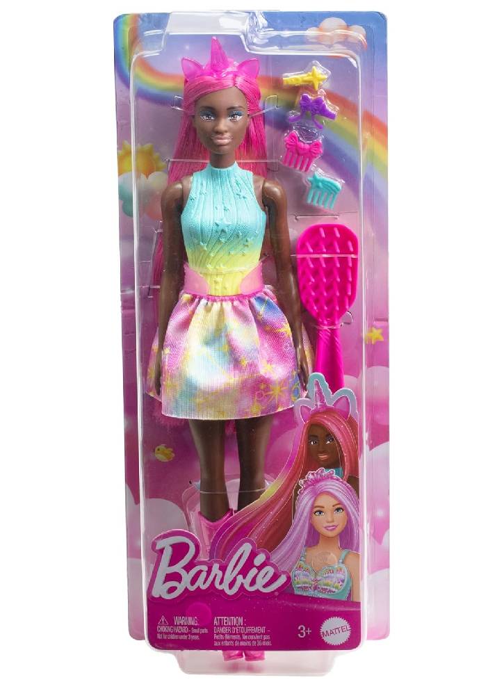 Inspired by Barbie A Touch of Magic, Barbie unicorn sparks enchanted stories and styling fun with her extra long fancy hair and styling accessories!