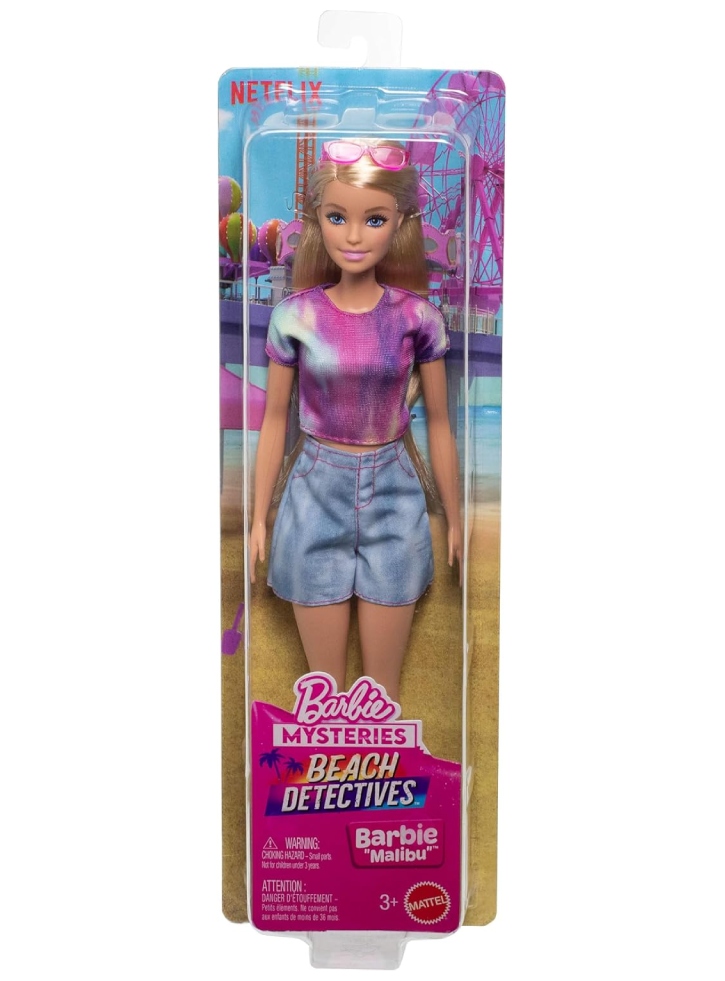 Imaginația poate visa la tot felul de povești cu detectivi cu păpușa Barbie „Malibu” inspirată de seria Barbie Mysteries: Beach Detectives!