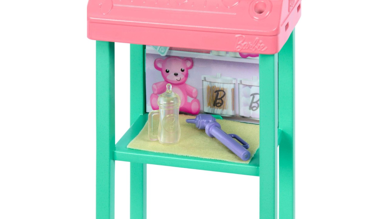 Transforms play into a medical adventure with Barbie Baby Doctor Set.