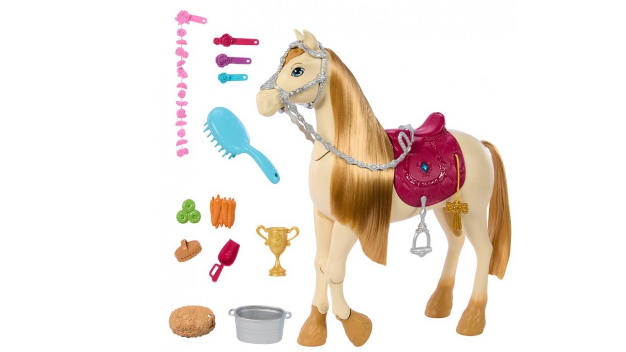 Acest simpatic cal Barbie dansează, clipăie din ochi, interpretează melodii inspirate din serial și emite sunete amuzante, precum necheză, ronțăie, galopează și multe altele.