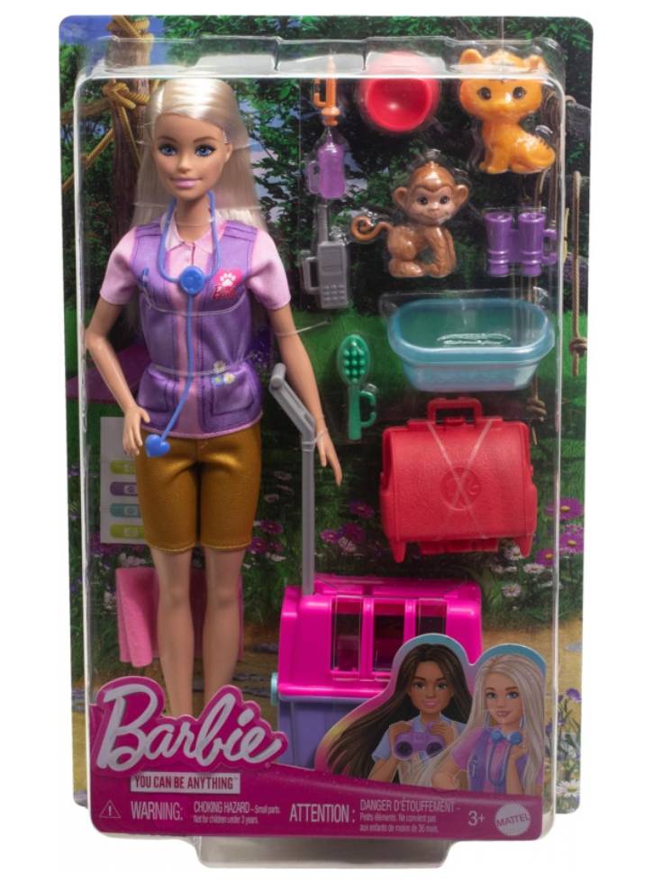 Barbie Animal Rescue doll has two adorable patients to rescue and care for with her many accessories: a baby monkey and a baby tiger.
