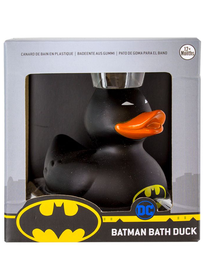Venind în întregime în negru (în afară de ciocul clasic portocaliu al rățuștelor), rățușca de baie Batman poartă, de asemenea, emblema iconică a lui Batman pe piept.