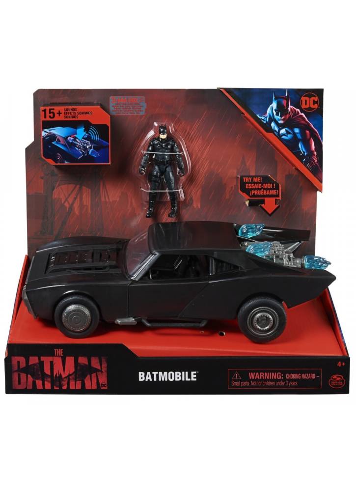 Decorul detaliat și sculptura în stil cinematografic aduce Batmobilul la viață. Apasă în jos pe motor pentru a activa peste 15 sunete precise ale motorului, exact ca în filmul Batman.