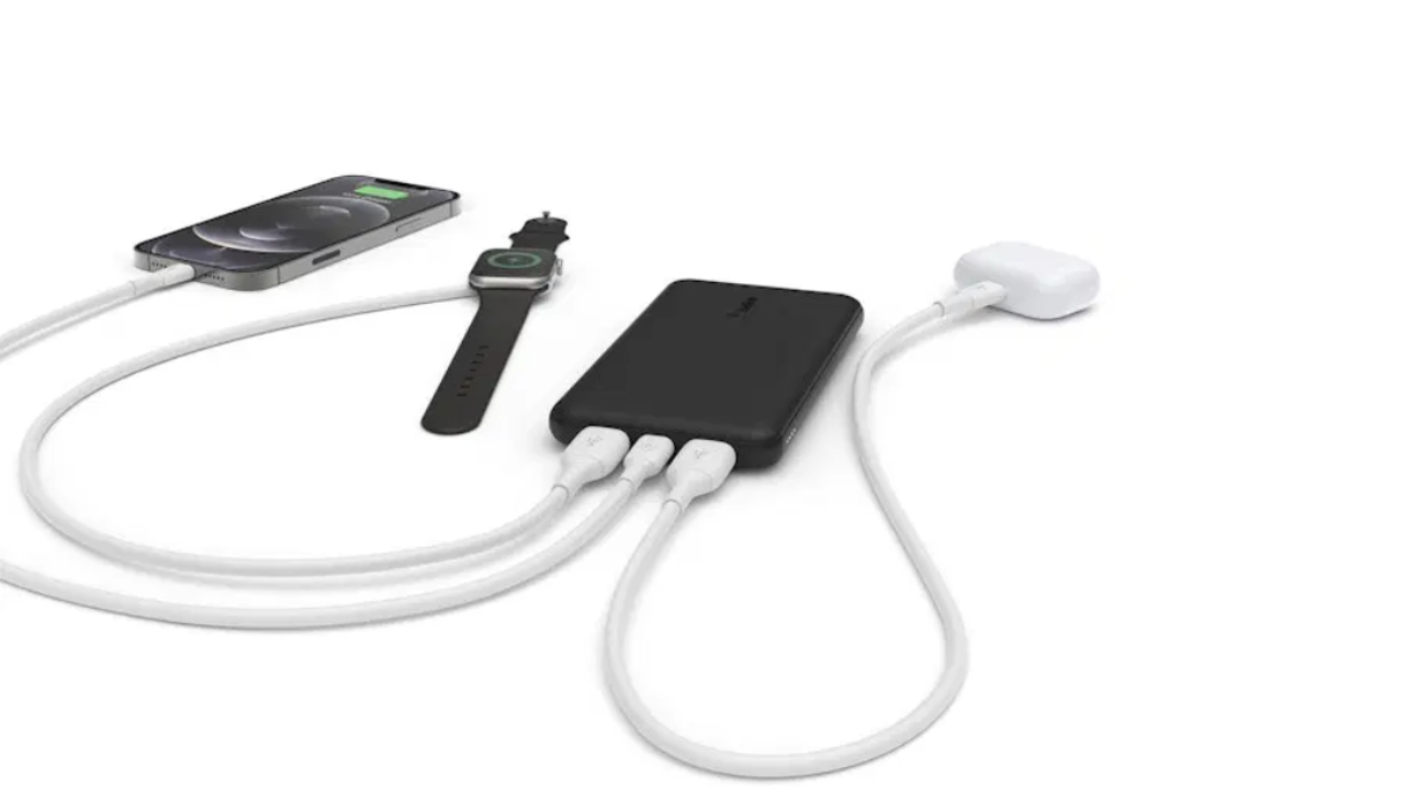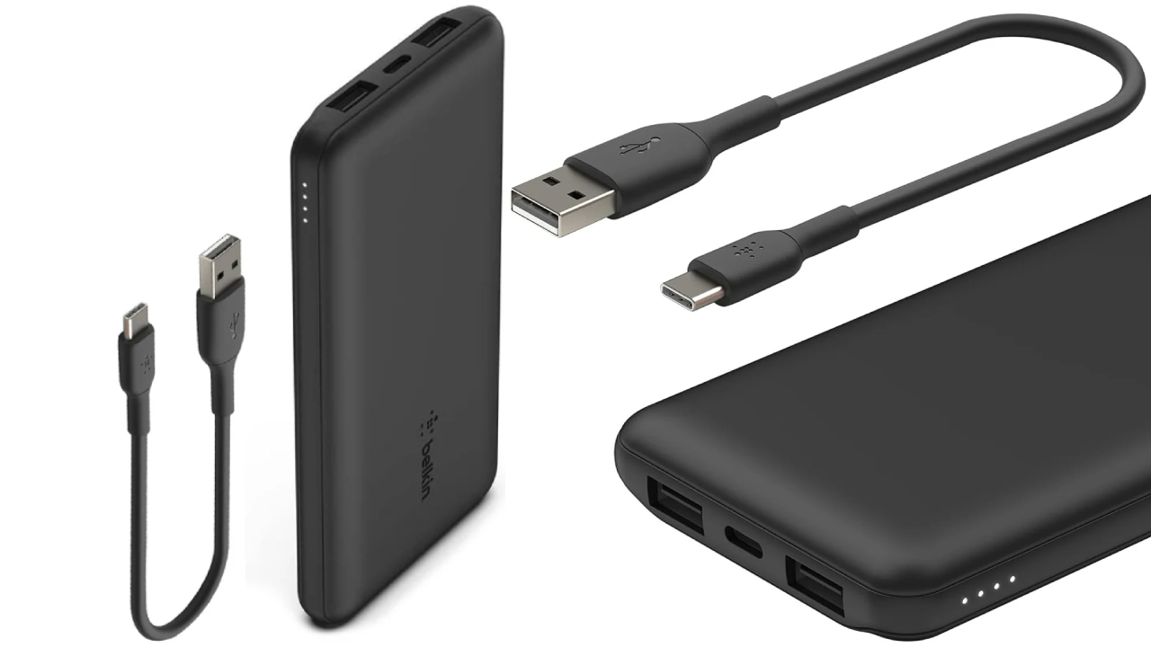 Baterie externă universală și compactă de 10000mAh de la Belkin cu cablu USB-C/USB-A inclus pentru majoritatea smartphone-urilor, tabletelor, ceasurilor inteligente,etc.