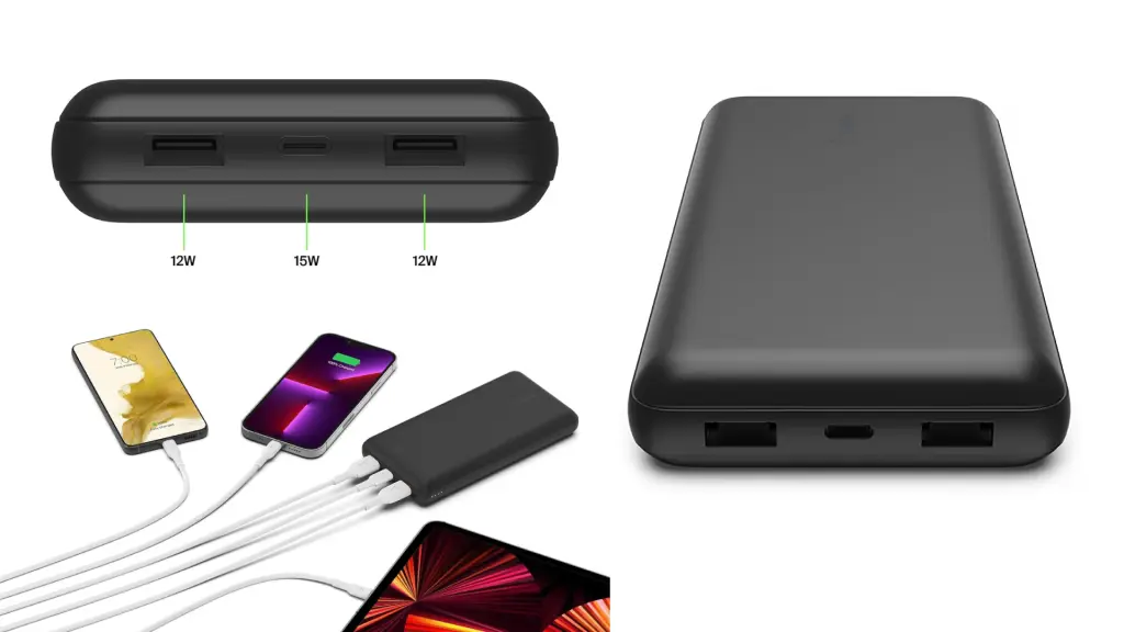 Conectati-va la o incarcare puternica si portabila cu Power Bank 20K. Aceasta ofera energie prin portul USB-C si prin porturile USB-A duble, permitandu-va sa incarcati pana la trei dispozitive in acelasi timp.