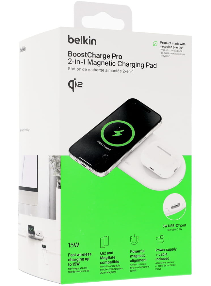 Obțineți până la 15W de încărcare rapidă pentru iPhone pe pad-ul Qi2 și până la 5W de încărcare la viteză standard pentru AirPods sau alte dispozitive pe pad-ul Qi.