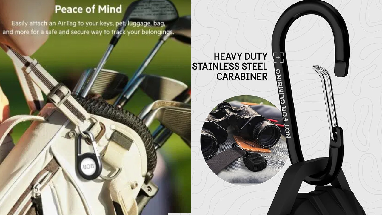 Urmăriți-vă bunurile cu ușurință și încredere folosind suportul nostru securizat cu carabină pentru AirTag.