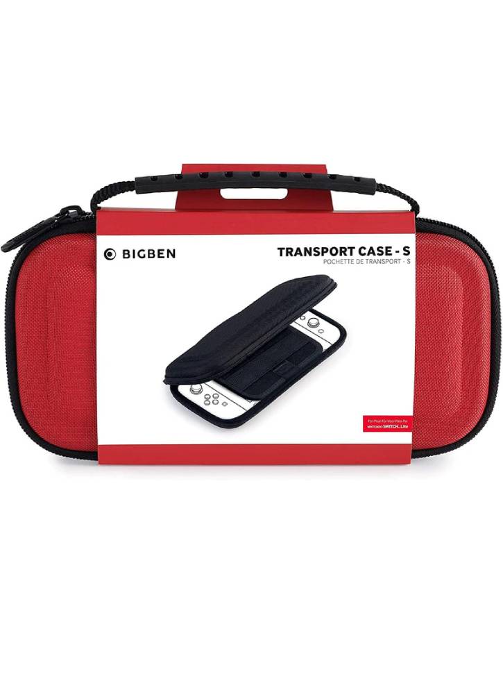 Husa de transport rosie pentru Nintendo Switch Lite vine cu un fermoar si maner rezistent.
