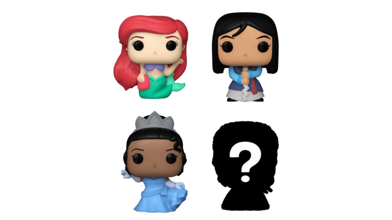 Acest pachet de 4 include Bitty Pop! Ariel, Mulan, Tiana și o figurină Bitty Pop! misterioasă.