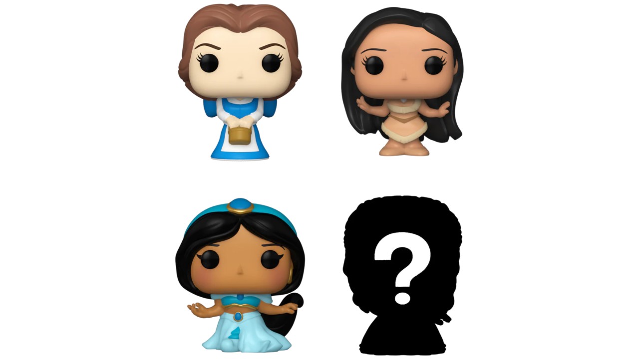 Acest pachet de 4 include figurine Bitty Pop! Peasant Belle, Bitty Pop! Pocahontas, Bitty Pop! Jasmine, și o figurină Bitty Pop! misterioasă.