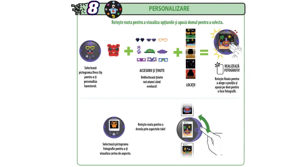 Jucați-vă și îngrijiți-le în lumea reală folosind ecranul tactil, diverse butoane și senzori, iar suportul este inclus.