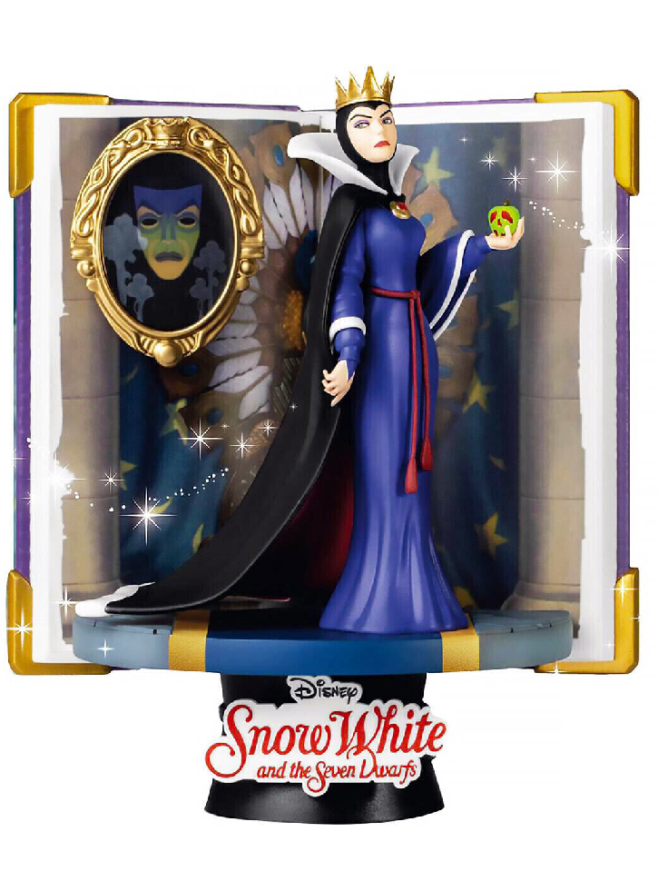 Văzută aici cu mărul otrăvit în mână și cu infama oglindă în spatele ei, Grimhilde radiază de răutate pură.
