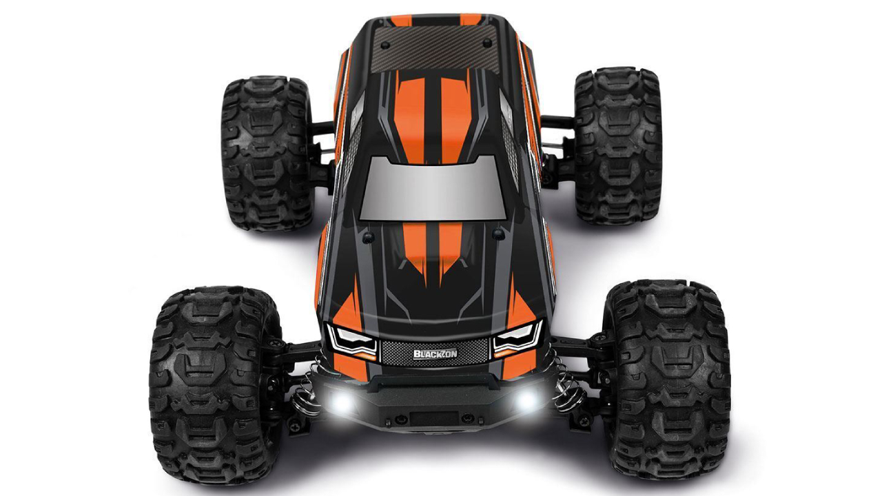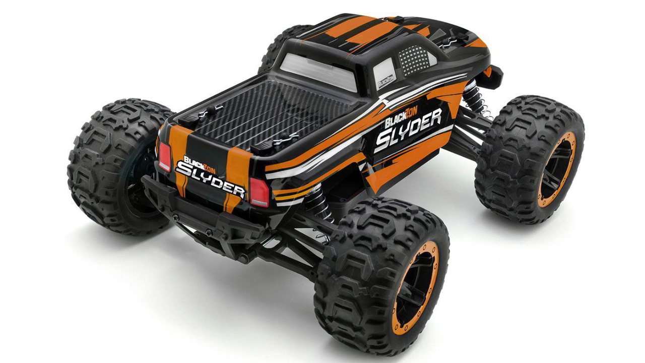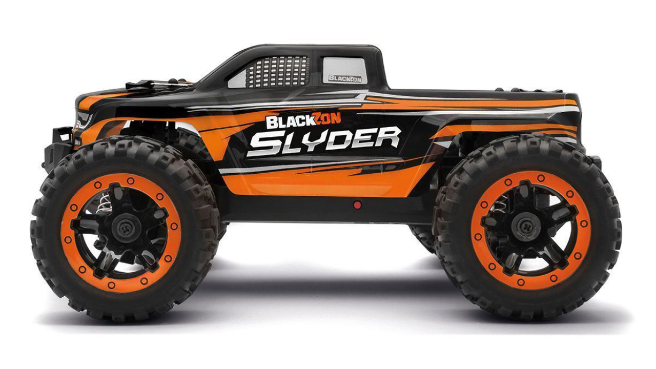 Camionul electric Blackzon RC 1/16 Slyder MT 4WD Electric Monster Truck - Orange, 2.4GHz, gata de funcționare.