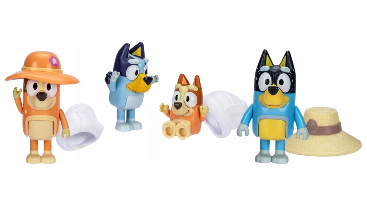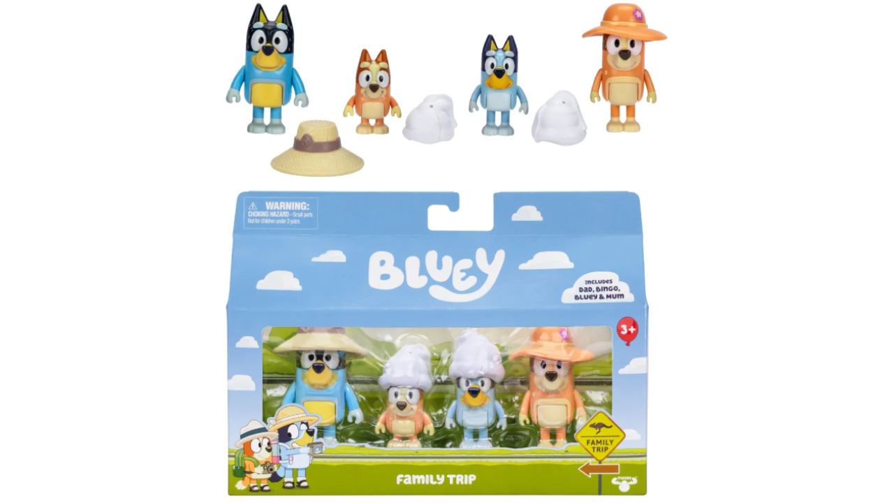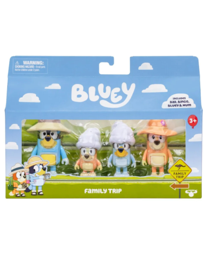 Colectează întreaga familie Heeler în pachetul de 4 figurine Bluey „Excursie în familie”.
